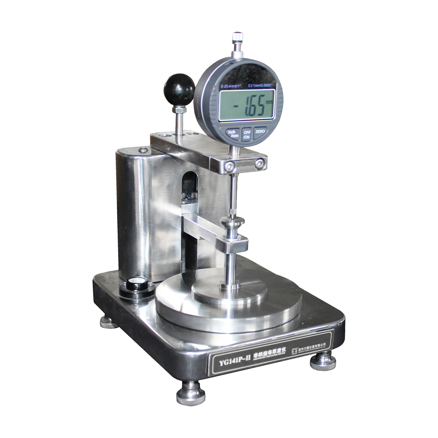 YG141P-II非織造布厚度儀 GB/T 24218.2-2009 紡織品 非織造布試驗方法 第2部分:厚度的測定、ISO 9073-2-1995 Textiles-Test method for nonwovens-Part 2 Determination of thickness。